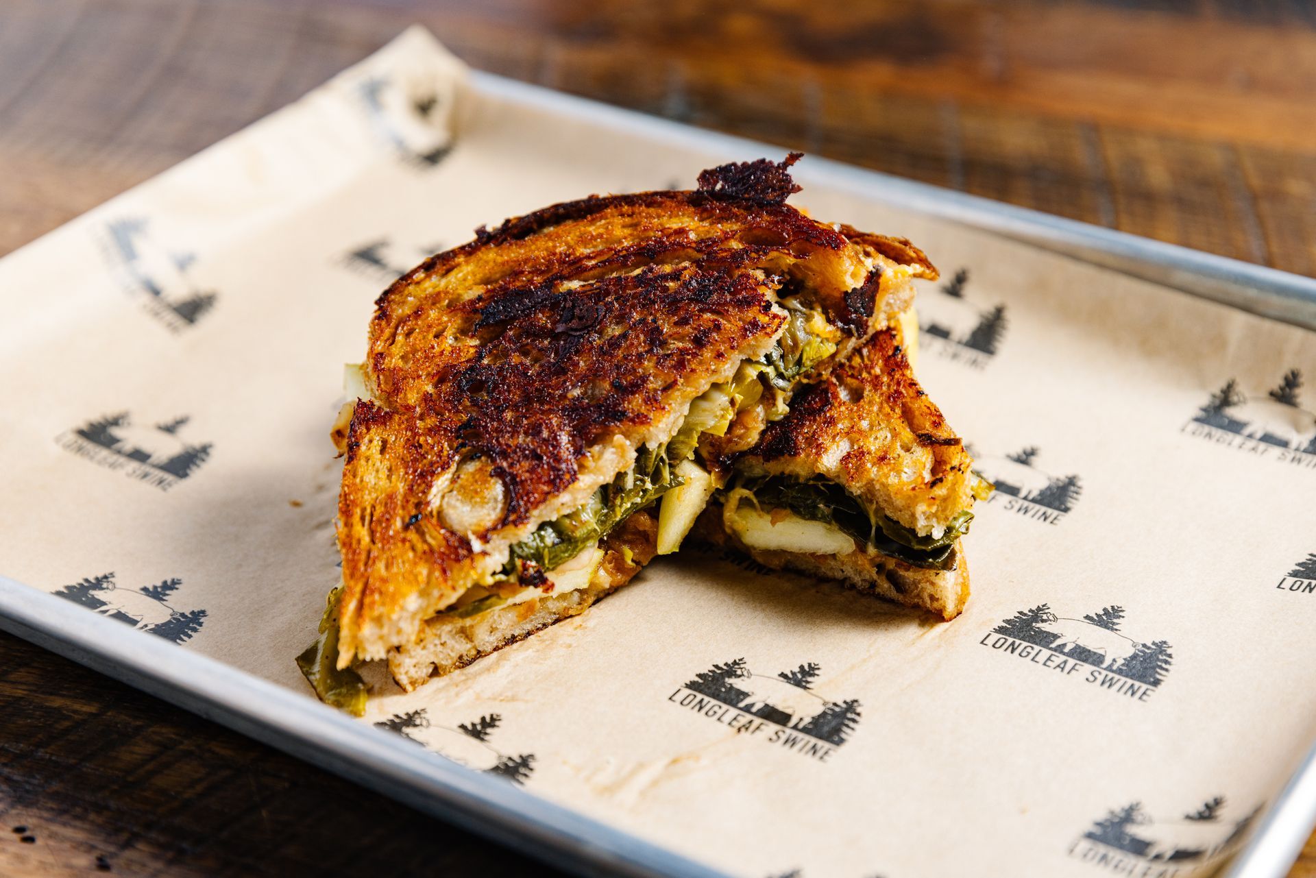 fresh apples, collards, tobacco onions, muenster, Union Special sourdough V