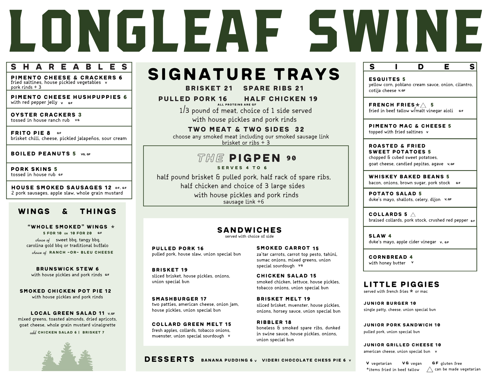 1/2 POUND BRISKET, PULLED PORK & SPARE RIBS; HALF CHICKEN CHOICE OF 3 LARGE SIDES; HOUSE PICKLES & PORK RINDS